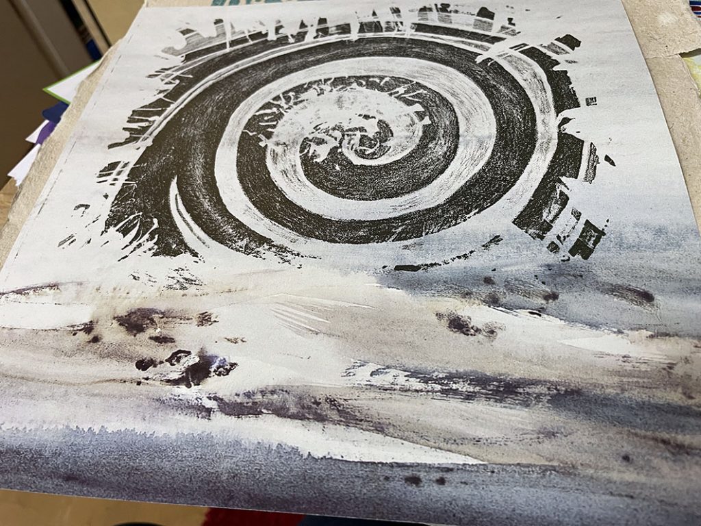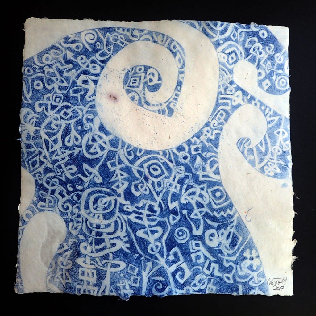 „Ornament“, 2019, Plexi-Kaltnadel-Radierung, gedruckt auf handgeschöpftem Papier