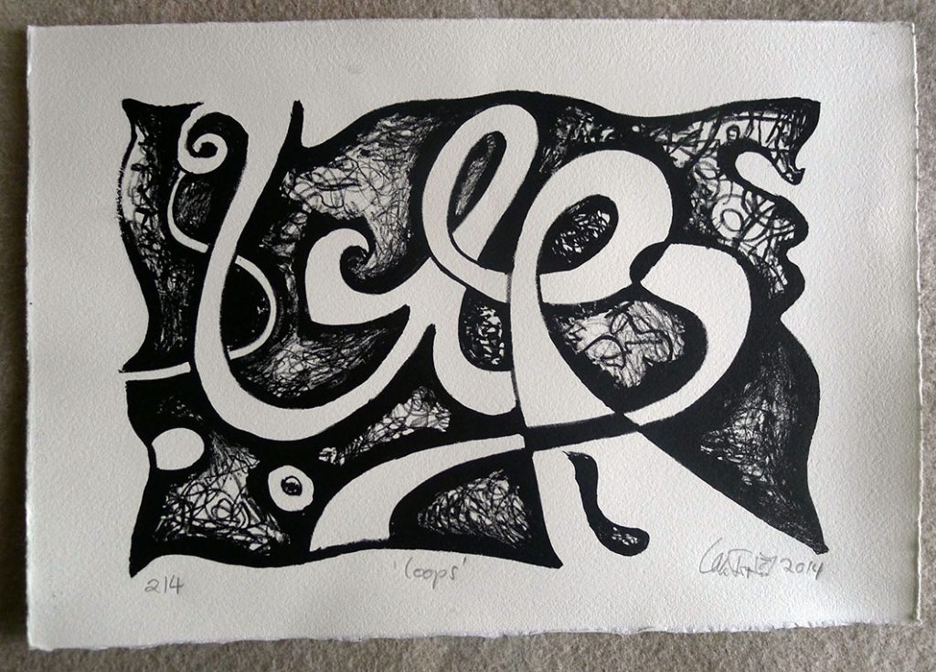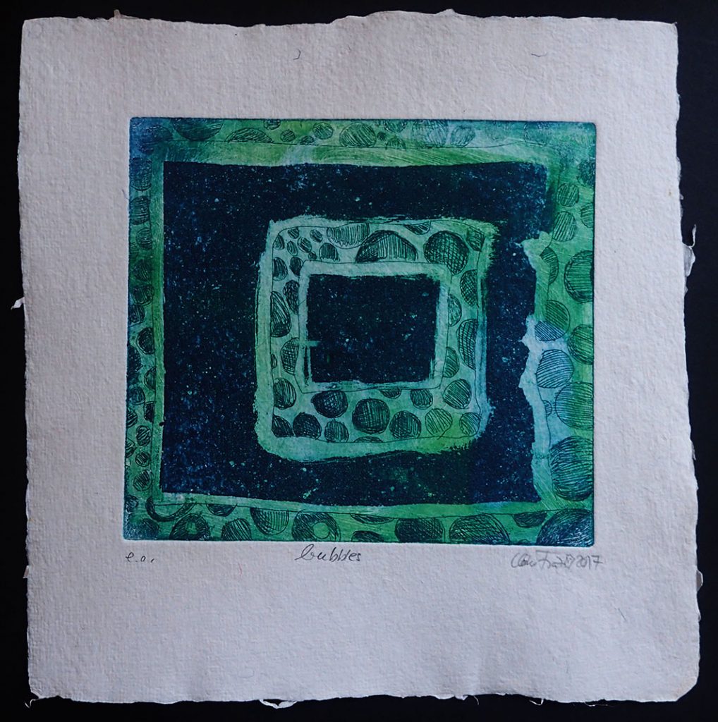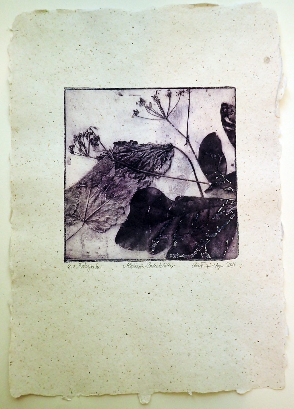 Spruch-Graphik, Kaltnadelradierung mit Aquarell, 2026, Ausschnitt