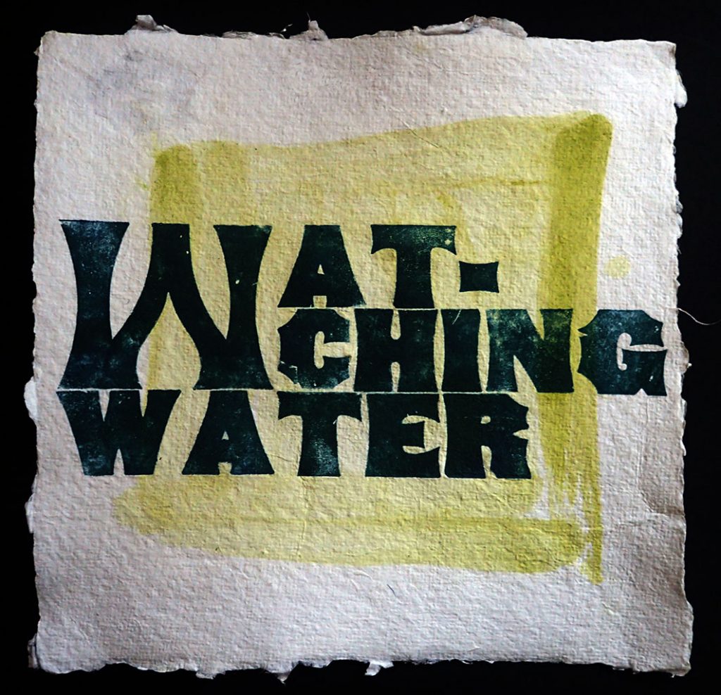 „Watching Water“ 2019, Holzlettern, gedruckt auf handgeschöpftem Papier im Studio 150, in Gordo, Alabama
